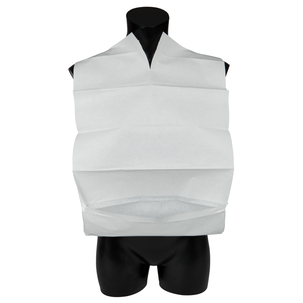 Smekken har knyting i nakken og vendbar lomme. Dette sikrer at lommen forblir åpen for å samle opp mat, væske og forhindre søl. Den absorberende overflaten og væske tette baksiden sørger for at klærne under forblir tørre og rene.